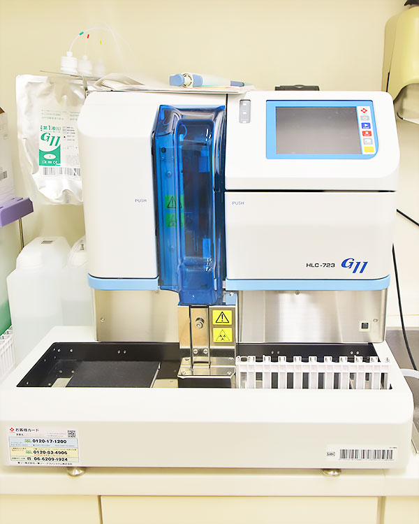 HPLC法によるヘモグロビン・エイワンシーの測定装置です。わずか45秒で測定できます。