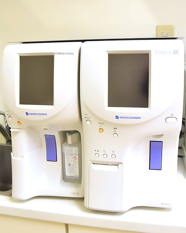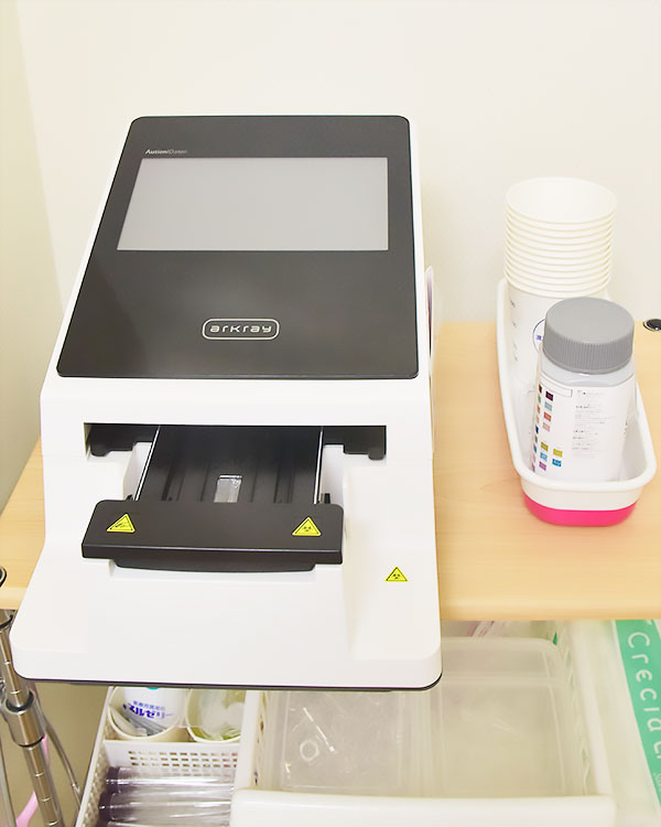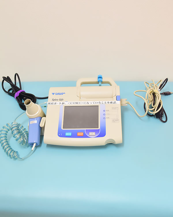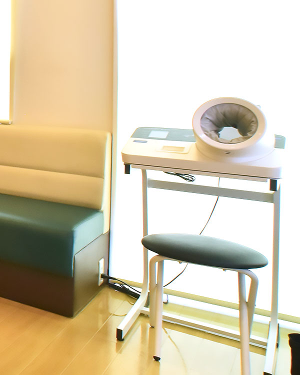 病院に来ると血圧が上がる患者さんがおられるので自動血圧計を用意しました。これで測定して血圧が高い場合は処置室で再検査いたします。